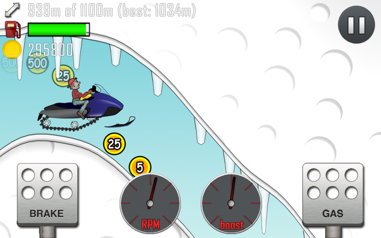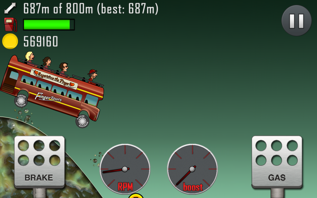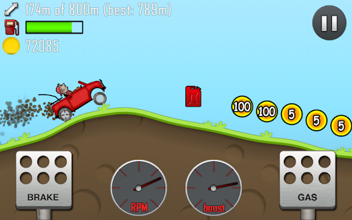 Hill Climb Racing e um joguinho de carro muito legalzinho em 2D, onde você passa fazes e compra carros. O jogo e simples mais bem viciante, eu acho que você ira gostar.